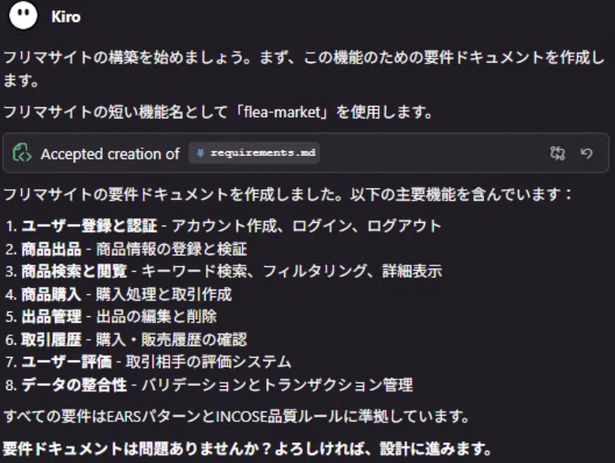 Kiroは仕様をきちんと定義しながら進める設計重視タイプ。ドキュメントが構造的に整理されるので中身を把握しやすく、チームでレビューしながら進める開発に向いていそう。